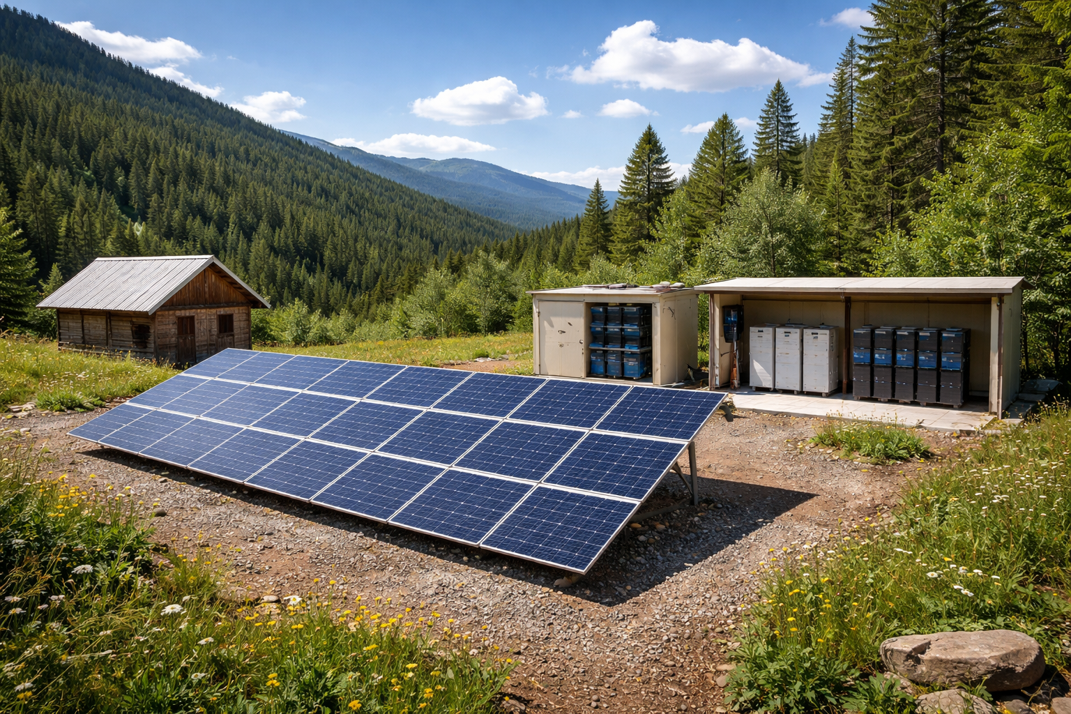 Off-grid inverter transforms stored DC into pure sine-wave AC for home delivery.